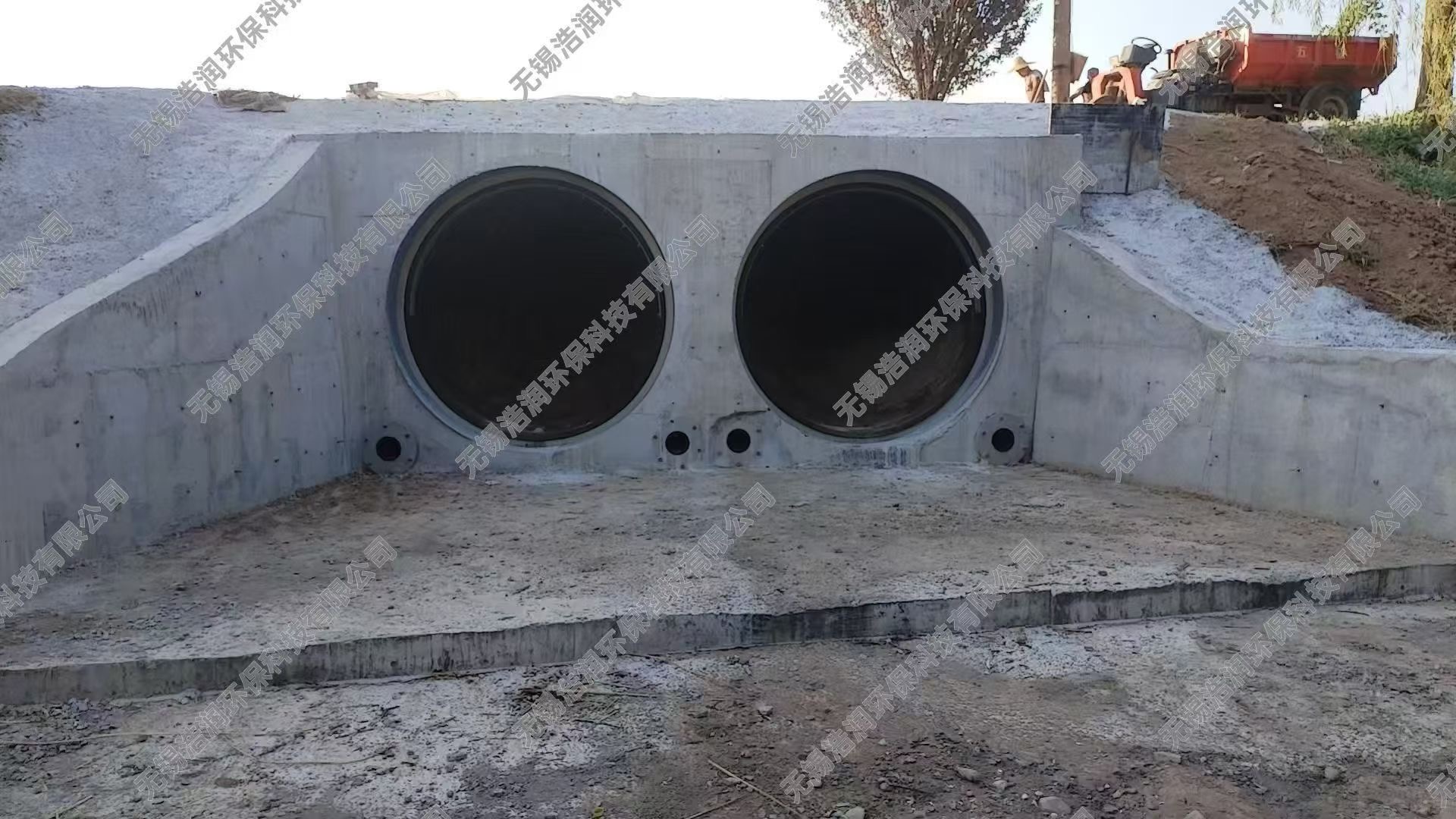 浩润环保DN2000管中型防倒灌器安装完成现场