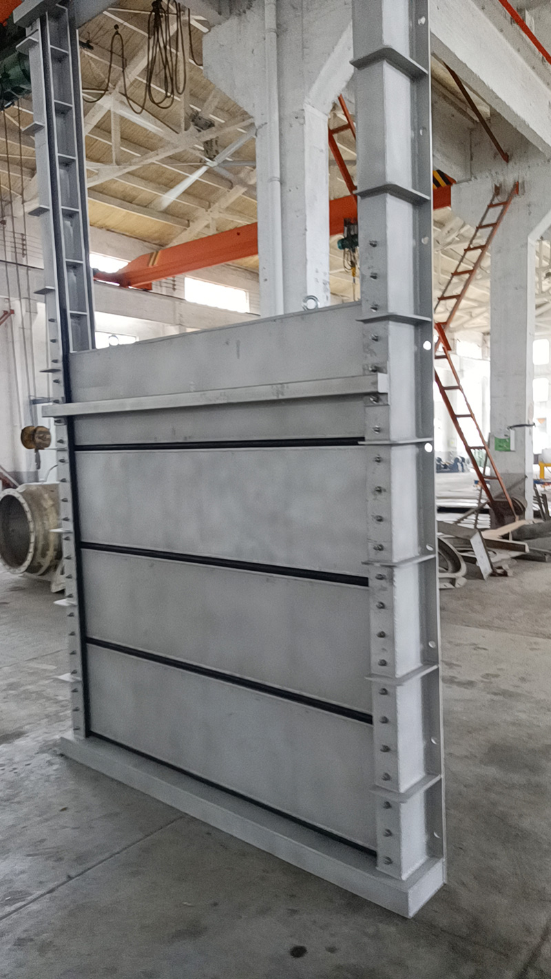 叠梁闸门分普通型和带预紧装置的叠梁闸两种。带预紧装置的叠梁闸门,在门槽上设一滑道,单块闸板均顺滑道下放,从而防止单根叠梁间的前后左右的错位。又在叠梁闸门上游两侧,各设一套使叠梁与门槽互相密贴的预紧装置,提高封水效果,带预紧装置的叠梁闸门比普通型叠梁阀止水效果好。