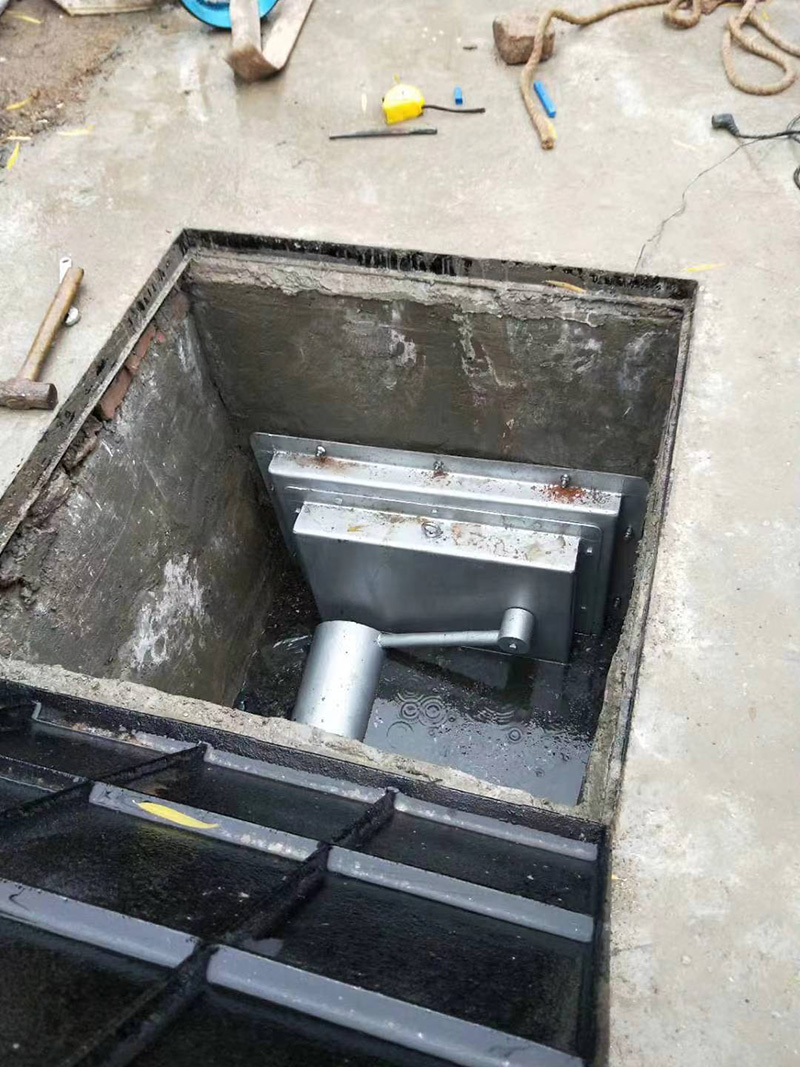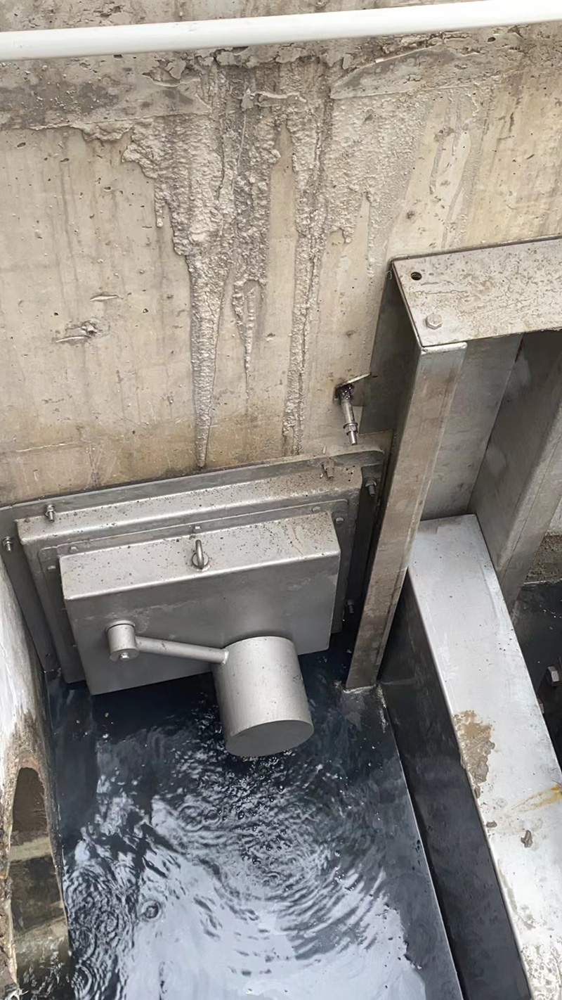 产品由阀体、扇形挡板、浮筒控制器组成,当晴天或雨水初期,雨水井内污水液位较低,浮筒阀靠浮筒自重,污水口处于开启状态,雨水管网污水通过污水流入污水管网,当雨天雨水管网水量增大,随水位上升,浮筒控制器靠浮力控制不锈钢扇形板关闭排污口,停止排污,雨水流入附近河道,湖泊。当雨量减小,浮筒控制器随液位下降而复位开启排污口,正常排污,实现了雨污分流