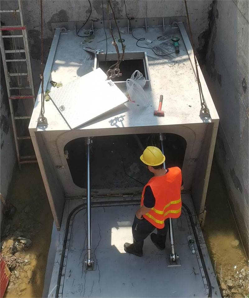 ![]() 湖北一体式液动旋转堰门安装现场 |