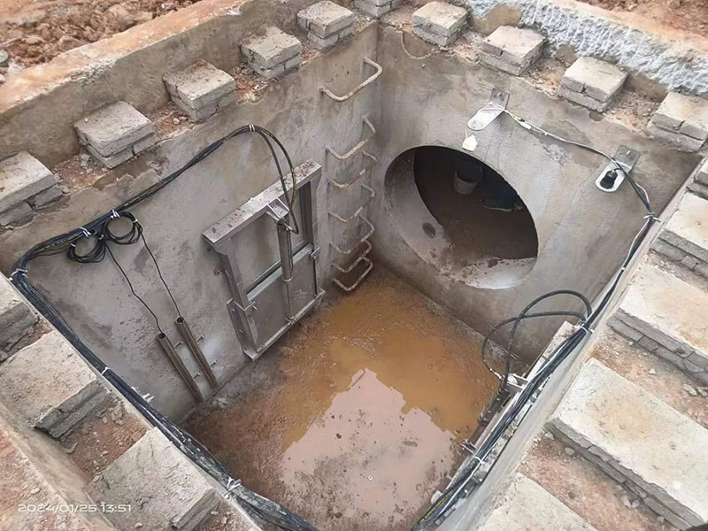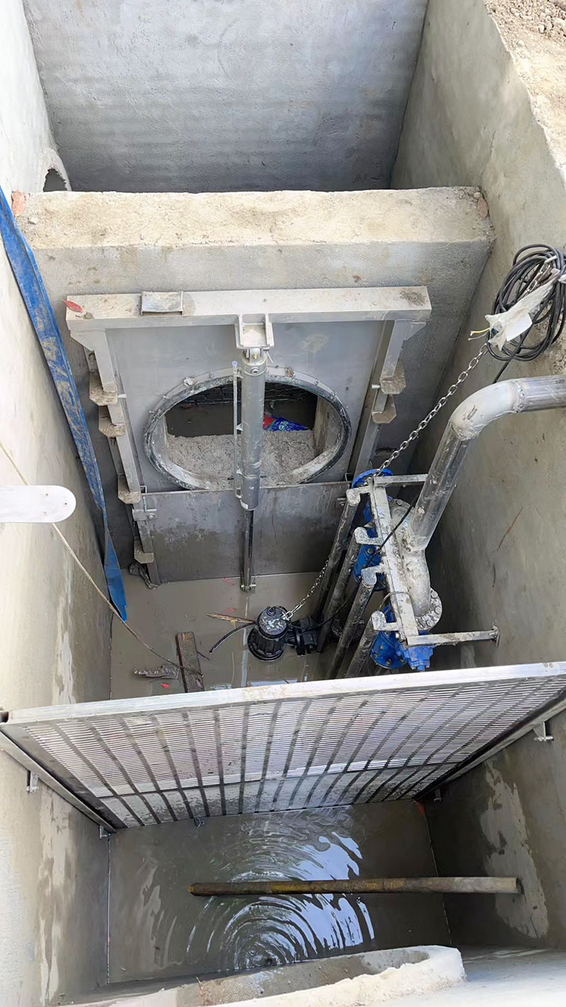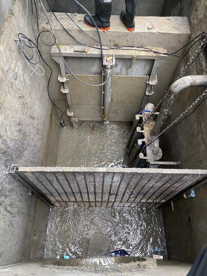 液控截流井截流井主体是钢混结构,配套截污闸门、雨水闸门、进水格栅、污水提升装置、液压控制系统、压力传感器、雨量计、防雨控制柜、智能云监控平台等。截污闸门采用不锈钢平板限流闸,雨水闸门根据工况可选用平板限流闸、液动下开式堰门或液动旋转堰门,密封性好,液压驱动,动力足,启闭自如。在污水不能自流时,增选污水提升装置,采用耦合机构,阀门管道采用304不锈钢,安装维修方便,为防止垃圾堵塞水泵,进水口安装304不锈钢提蓝格栅,拦截大的垃圾物,提蓝采用专用耦合挂勾连接,清理时沿挂勾导杆提起,不需进入井内清理;监测系统采用压力传感器和雨量计控制,既可通过雨量大小控制闸门开启,也可通过压力传感器监测井下液位变化控制闸门开启,实现连锁控制,保证监测的准确性;控制系统采用智能云平台远程操作监控,实现无人值守,多点监控操作。