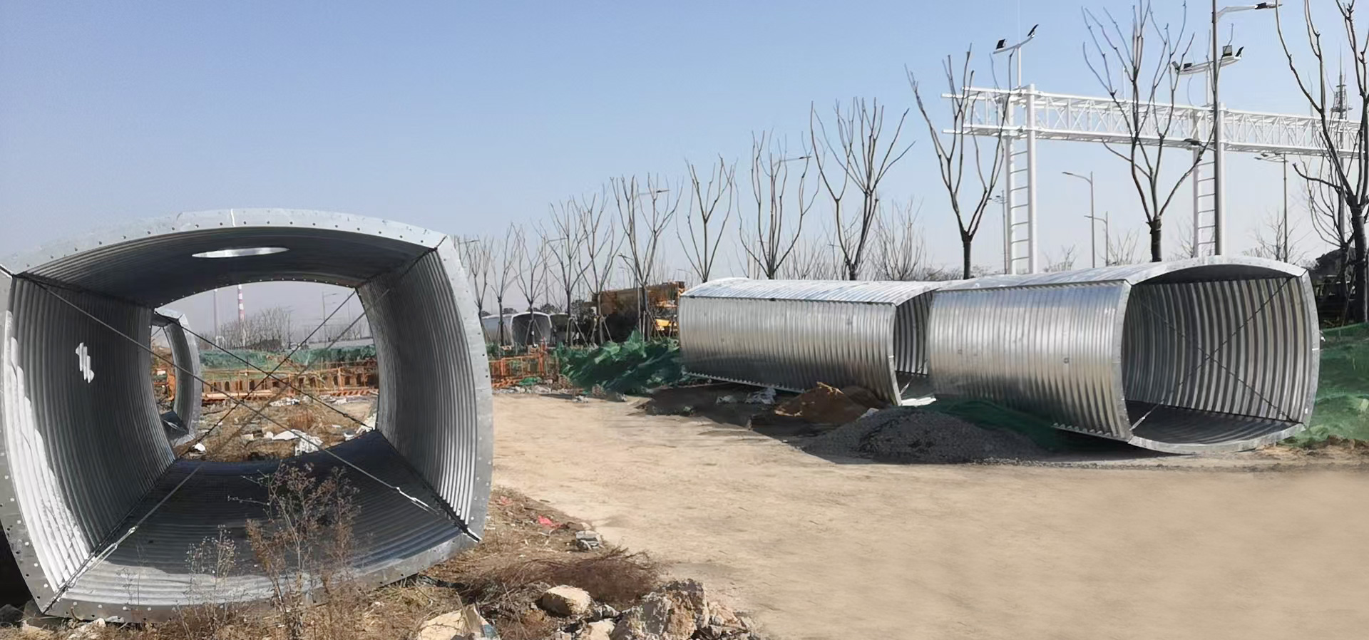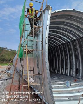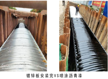 3、喷涂沥青,工点安装完毕后喷涂沥青两遍,外层(非与土接触)裸露部分采用浅色沥青,具体颜色需结合景观设计选取。指标应满足国家标准《冷弯波纹钢管》(GB/T 34567-2017) 的要求。