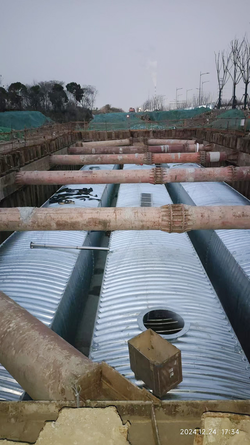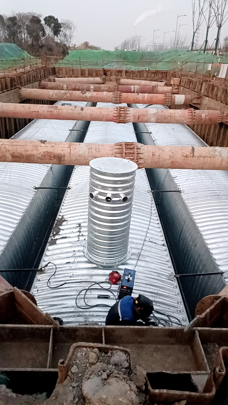 装配式蓄水池是一种水资源储存和调节设施。其设计理念和构建方式都体现了现代工程技术的发展和应用。是以Q355钢材为主要原材料,经加工成型具有一定拱形和波幅的波纹结构并经焊接防腐等加工处理成预制构件,通过装配栓接形成的池体。
