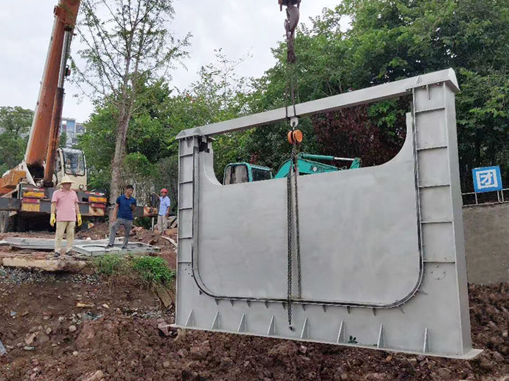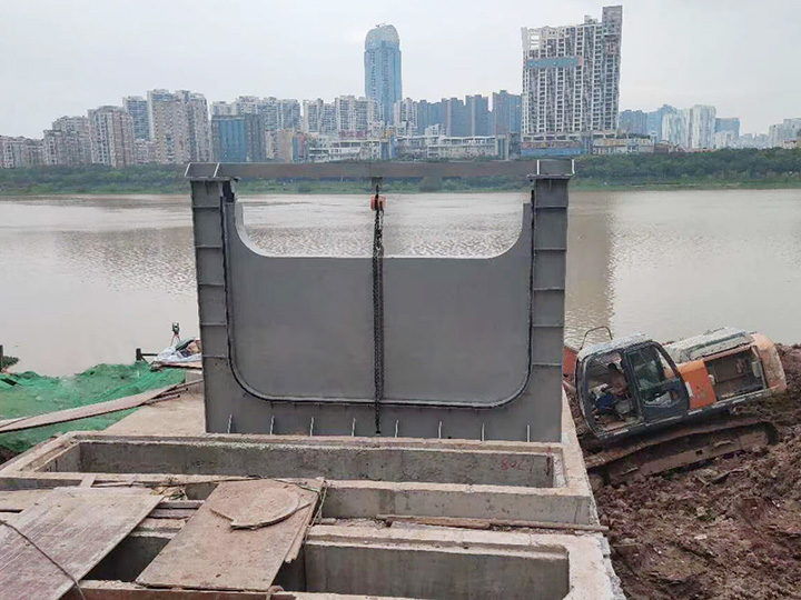 1、结构紧凑,堰门向下开启,不占用上部的安装空间,不影响地面上的景观。